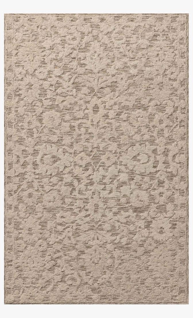 The Paige Collection is a hand-tufted area rug made of soft, space-dyed wool and cotton, which lends a subtle gradation of color throughout the floral design. The rugs background is low-looped, while the pattern is made with a chunky, higher loop to create even more depth in this sophisticated design. This collection is hand-tufted of wool and cotton in India and Goodweave-certified, ensuring our commitment to ethical production and the support of weavers communities.