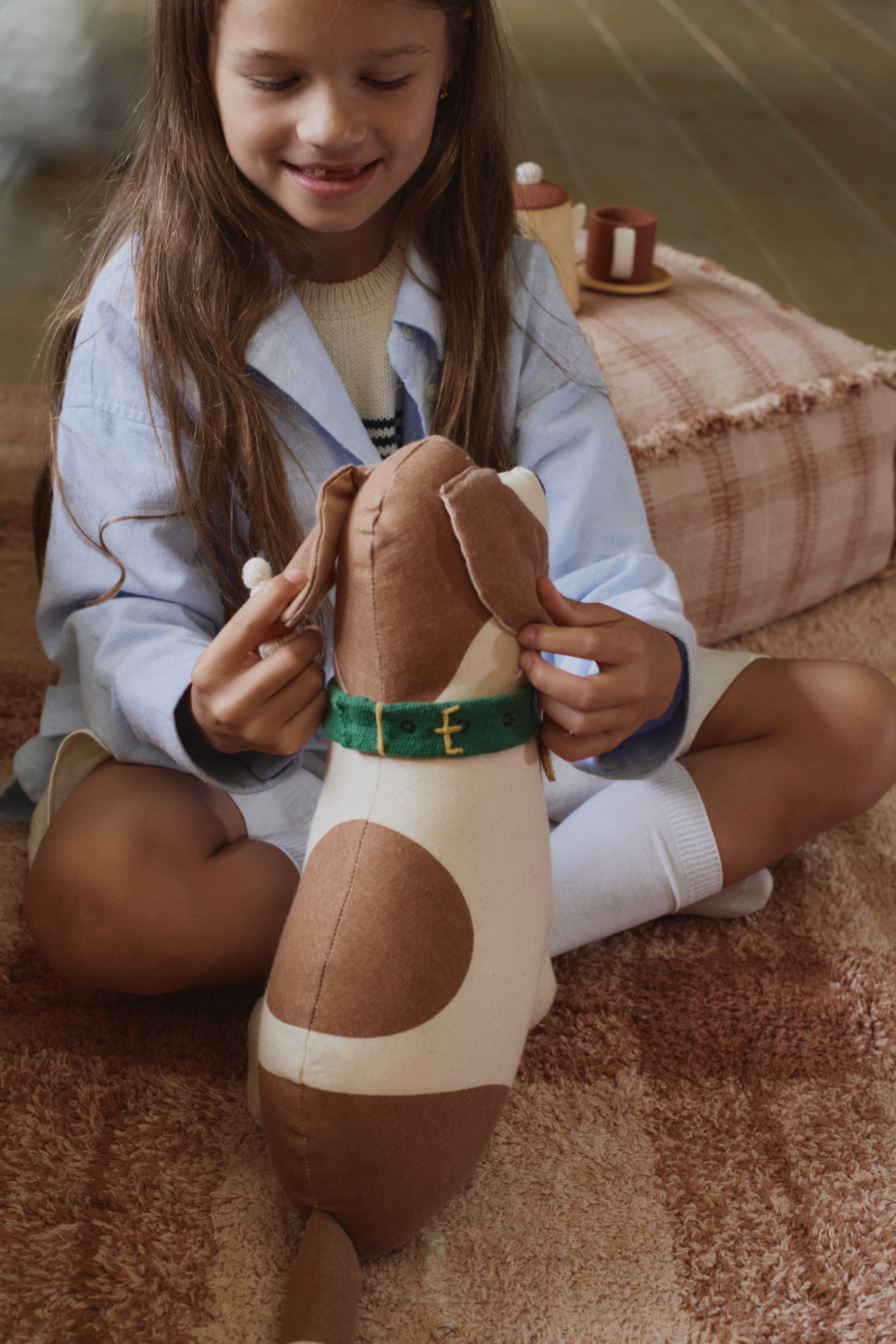 Meet Cooper, your most loyal friend! This playful cushion is shaped like a Beagle, crafted from soft cotton fabric with realistic details that perfectly capture Cooper's charm. Its floppy ears playfully cover its eyes, while a wagging tail adds to its animated personality. The carefully crafted collar features a hand-embroidered medal with the Lorena Canals logo, giving it a special, handcrafted touch.